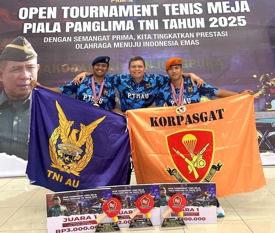 Jakarta  (28/9/2025), Open Tournament Tenis Meja Piala Panglima TNI Tahun 2025 yang digelar dalam rangka memperingati HUT ke-80 Tentara Nasional Indonesia (TNI) ini sesuai telegram yang dikirimkan ke setiap angkatan termasuk ke Kepala Staf Angkatan Udara  dan diteruskan ke Ketua Cabor Tenis Meja yaitu Kadisinfolahtaau Marsma TNI B. Antar Samodra selaku Ketua Umum Persatuan Tenis Meja Angkatan Udara (PTMAU) menyambut baik kegiatan open turnamen tersebut dalam rangka pembinaan Atlit-atlit tenis meja di lingkungan TNI Angkatan Udara.